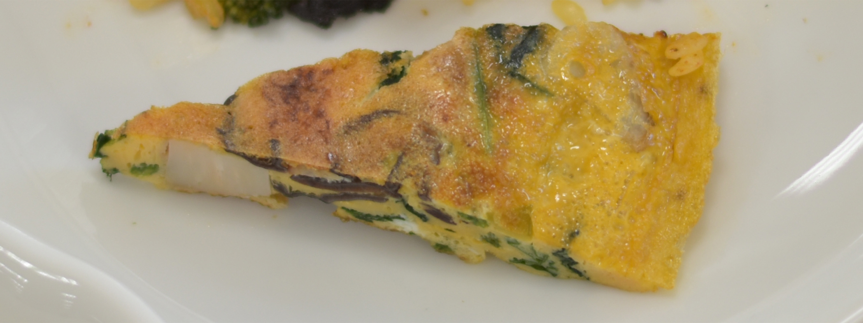 - 6 卵(5個)をボウルに溶いたら、塩(小さじ1)ブラックペッパー(少々)を加え、あらかじめ電子レンジで調理した全ての具材を加えて混ぜ合わせます。
